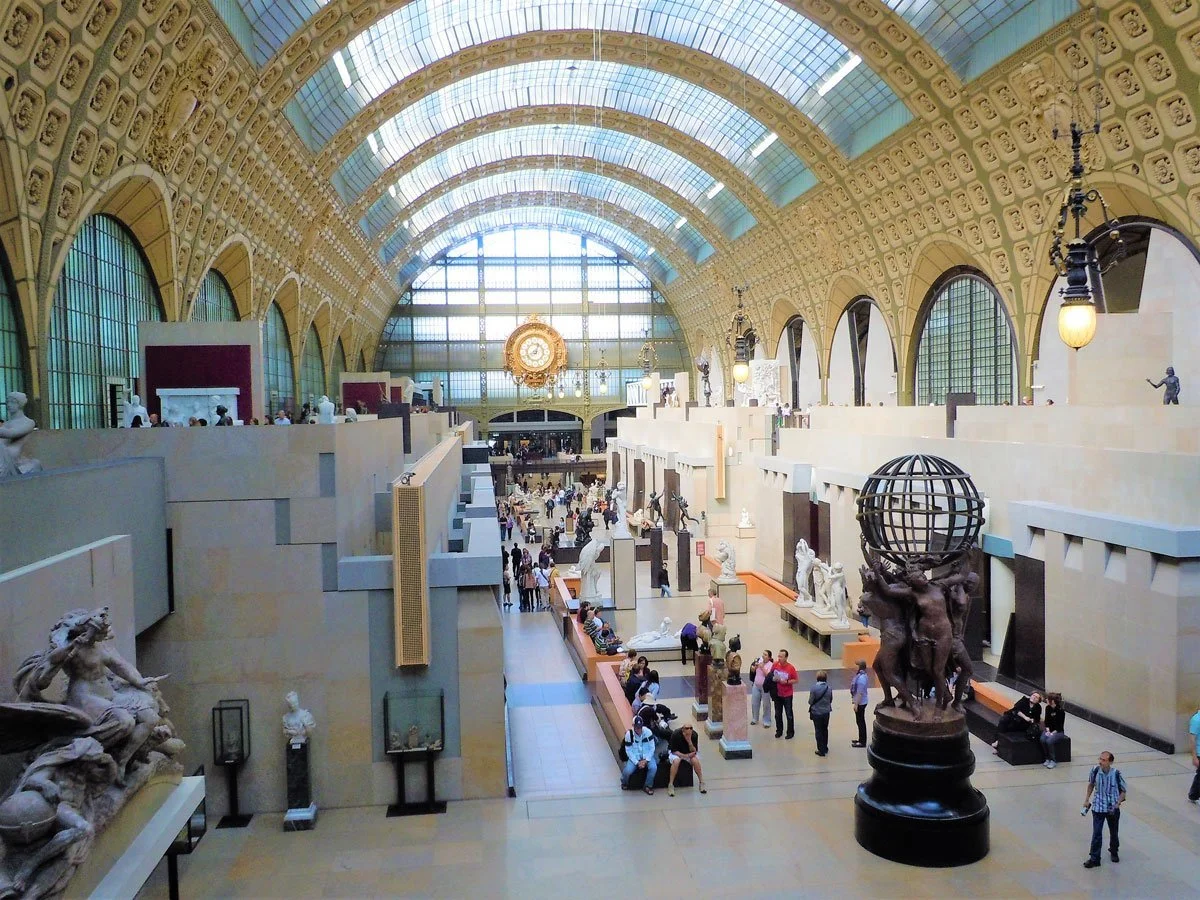 Musee d'Orsay- The Orsay Museum, located on the Left Bank of the Seine in a wonderfully restored railway station is one of Paris’s real treasures. The Orsay is a digestible and inspiring cultural experience for both art enthusiasts and the general audience. This museum focuses on the works of artists from the mid-19th century to the early 20th century including Renoir, Van Gogh and Monet. Thousands of paintings from classicist, impressionist, French realists, and other styles are displayed on two levels of the Orsay. You can walk down one side of the museum and back along the other, moving quickly through the displays or studying ones of particular interest or beauty to the beholder. For most people, a two-to-four-hour visit focusing on the impressionist rooms on the upper level provides a pleasant experience. One hidden gem not to be missed is the museum restaurant located upstairs. This elegant restaurant has a 1900 era decor with Fresco's adorning the ceiling. It offers tasty cafe items, lunch entrees and a variety of wines, teas, and beverages.